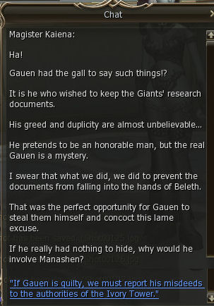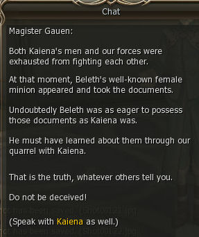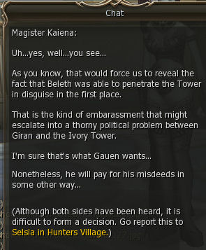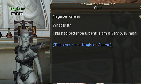 15) Gauen tells you to speak to Kaiena, who is again, in Ivory Tower on the Dark Elf floor.