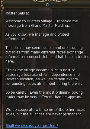 9) In Giran Meldina just sends you over to Hunters Village to talk to Master Selsia.