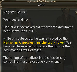 12) In Ivory Tower Gaius has you hunt Manashen Gargoyles which are under Ivory Tower.