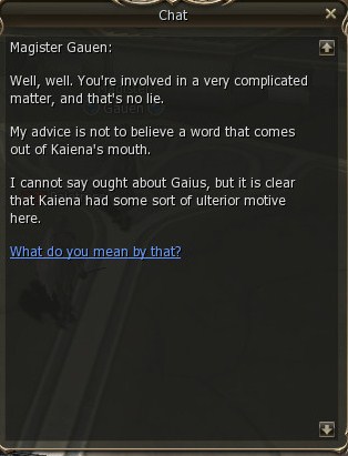 14) Gaius sends you to Gauen who is on the light elf floor of Ivory Tower.