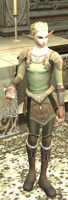 Master Cobendell lives in the Elven Village and is a master of the sword and bow. He assists in curing the elven guards from Sea of Spores fever by making a potion of a prepared mixture and Dryad tears.