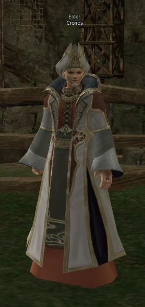 Cronos now lives a reclusive life in Hunters Village. He used to have assistants, teaching them some of the things he knows about magic. Although he is a rather arrogant person, a character trait that tends to come with high age, the people working for Cronos did greatly benefit from associating with the old scholar. Dieter, for example, a former errand boy of Cronos, is now Magister in the Magic Guild at Giran, teaching in turn new skills to young mages.