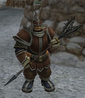 Defender Ethan is a guard in Dwarven Village at the east entrance. His true passion is writing poetry and will read one of his poems if one asks.