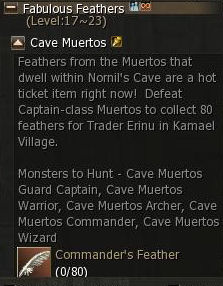 4) All Shady Muertos are double HP, but if you are quick about it you will be able to collect the required 80 Feathers in one hour of newbie buffs. The quest item acquisition rate is about 1 for every 2 Muertos killed.