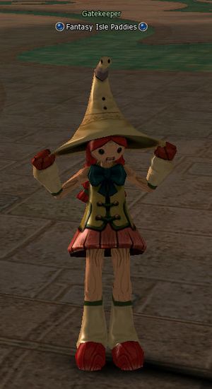 Gatekeeper Fantasy Isle Paddies is located on Fantasy Isle. She can teleport players back to the town they came from, to the Underground Coliseum, and to Kratei's Cube.