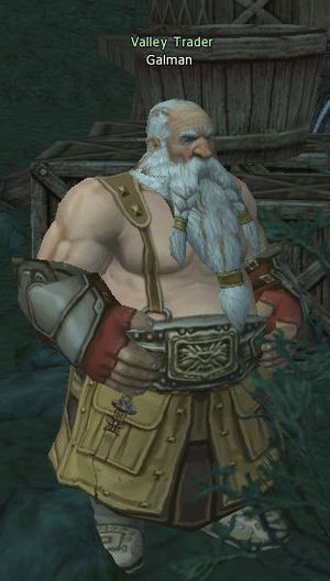 Galman is a trader in Dragon Valley selling consumables such as arrows, low grade potions and ore. He wishes to earn the power of darkness by paying adventurers to bring back Stones of Contract. With this power he hopes to cure the woman he loves.