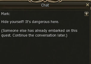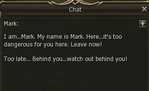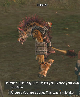Then a mob called a Pursuer spawns and starts attacking so you need to kill it. It's green to a level 48. I noticed that if someone interferes (KS's) in the fight you have to redo it. It's not marked as Quest but it gives no exp.
