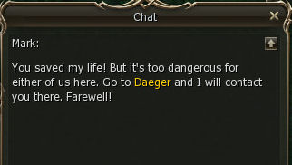 When the fight finishes properly Mark will tell you to go see Daeger again.