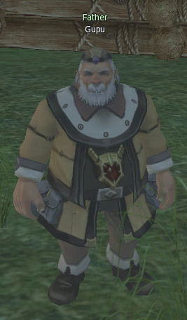 Father Gupu runs the orphanage outside of Gludio. Allana, Kristina, and Windy Shaoring came from this same orphanage. He pesters adventurers for 100,000 adena since the Orphan Girls are starving and the place is in ruins.