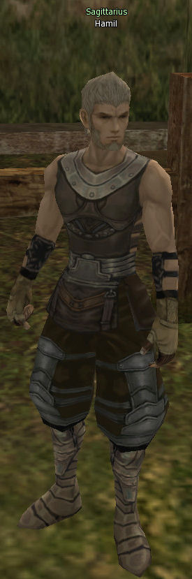 Hamil stands on the border of Floran Village by the river. He was dispatched by the Hunters Guild in Hunters Village to investigate suspicious activities in the area.