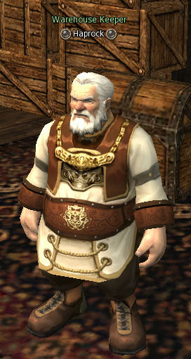 Haprock is a Warehouse Keeper in the Town of Gludio and belongs to the Iron Gate Guild.