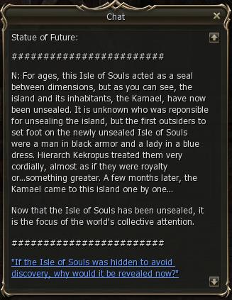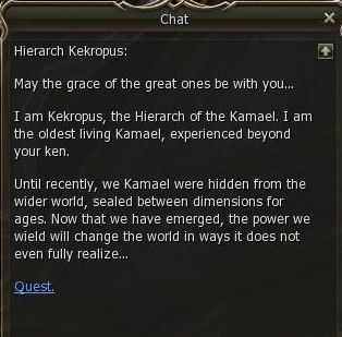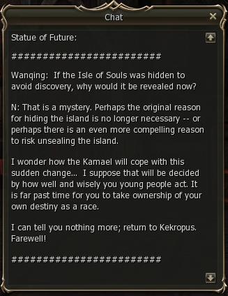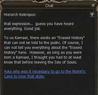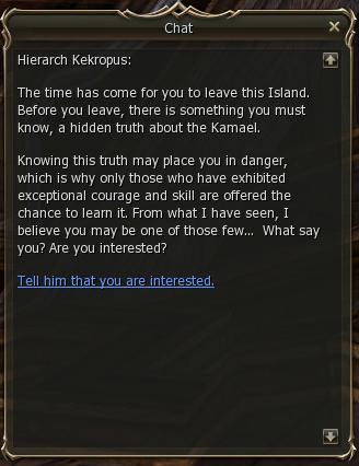 3) Kekropus tells you that there is a hidden truth about the Kamael which you should know about before you leave the island to pursue a fighter's career on the mainland.