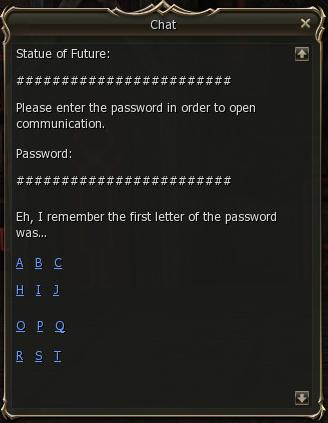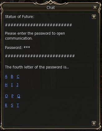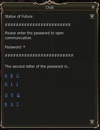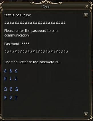 7) The statue resp. terminal requires you to enter a password. If you forgot that it is CRTR, look it up on your quest screen.