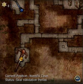 5) When you are at Nornil's Cave (the entrance is on the north side), open your world map, click on the "+" sign at the cave and a dungeon map will appear. The iconic statue you are looking for is in the bottom right corner, marked with a book symbol.