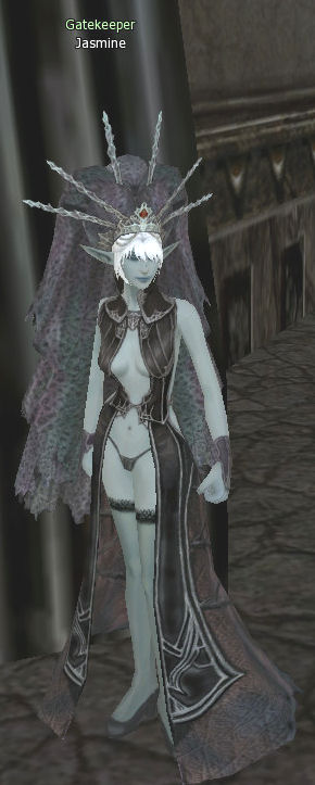 Gatekeeper Jasmine is located in Dark Elven Village by The Shilen Temple.