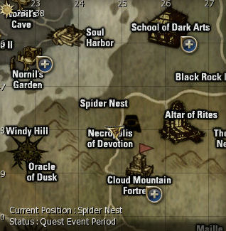 Kein Flying Knife is an Elven fighter located near the Necropolis of Devotion in the Spider Nest area. All he says though is "... an interuption"