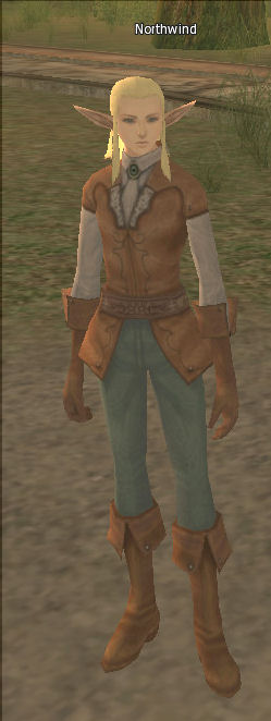 Northwind stands in front of the entrance to the Elven Fortress. He can make the Nobility Amethyst and has a passion for romance novels, and especially wanted to read 'Immortal Love'.