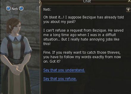 1) This quest starts at the west exit to Gludin with Captain Bezique. He sends you to talk to Neti who is also in Gludin.