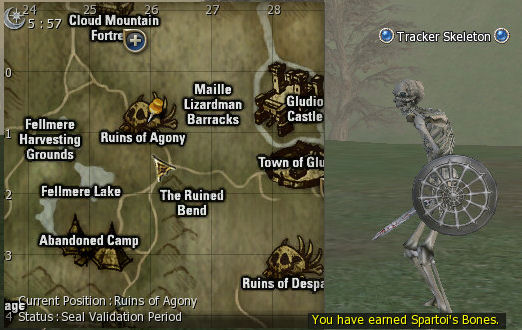 3) All mobs regardless of skeleton type give the quest item Spartoi Bones. Make sure to use Neti's Dagger or Bow. The Raging Spartoi and Skeleton Tracker Leaders are aggro so be careful, they are yellow to you at 18. When you have 10 go back to Neti.