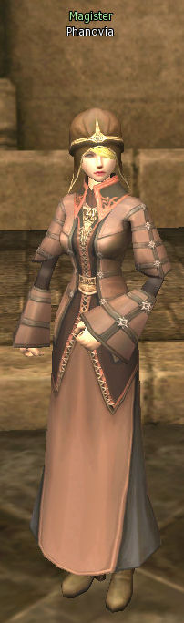 Phanovia is a Human Magister at the Einhasad Temple in the Town of Oren. She states that she teaches at this temple and at Ivory Tower.