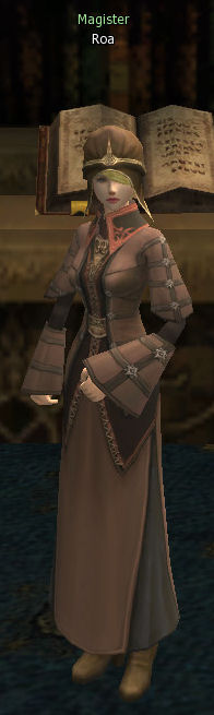 Roa is a Magister in the Magic Guild at Giran. She teaches new skills to Human adepts at magic.