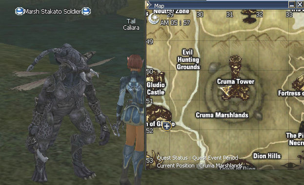 The rest of the mobs are found in Cruma Swamp. Once you have your list of items go back to Ivory Tower and speak with Gauren again.
