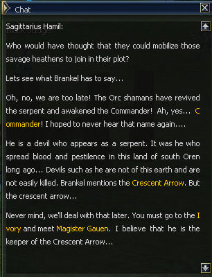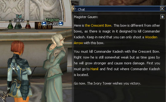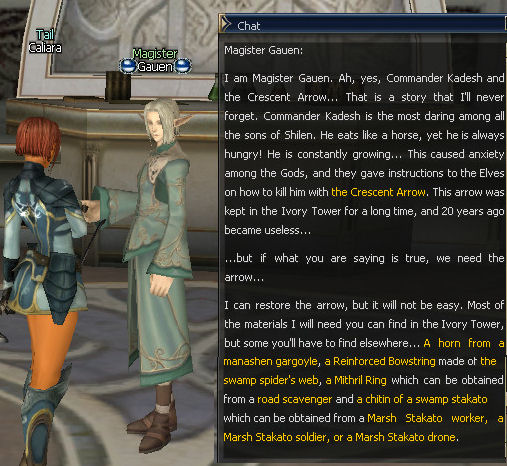 6) In Giran Vokian talks about a Crescent Arrow, but sends you first to Magister Gauen in Ivory Tower.