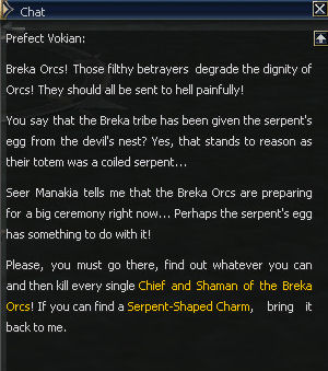 5) Vokian is just inside the first north exit by the Luxury Shop. He tells you to tell all the Breka Orc Overlords and Breka Orc Shamans.