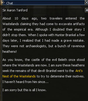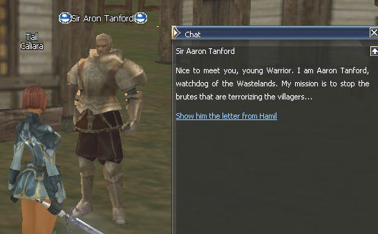 2) Hamil is just outside of Floran Village, and you will be back here many, many times. He sends you to find Sir Aaron Tanford in the Wasteland. (it's actually spelled Sir Aron Tanford in game)