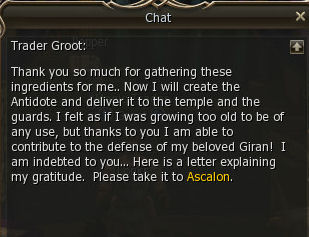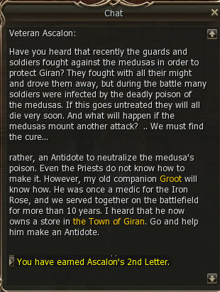 5) Ascalon sends you to Groot who is also in Giran in the Magic Shop.