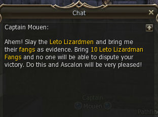 9) Ascalon gives you more things to kill, and it's too bad you can't just punch him right in the face at this point. Anyway he sends you to Oren to talk to Captain Mouen.