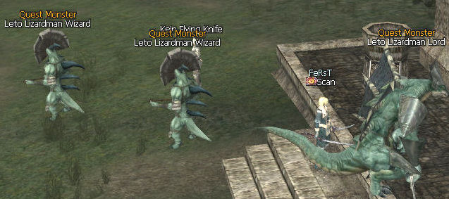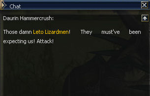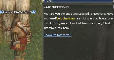 8) Daurin Hammercrush is standing against a fence right in one of the smaller orc camps. After you talk to him three Leto Lizardmen will spawn.