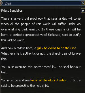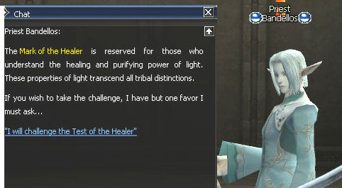 1) The final quest for healer type classes starts in the Einhasad Temple at Giran with Priest Bandellos. He tells you to visit Perrin at Gludin Harbor.