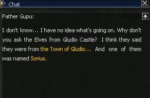 6) Father Gupu sends you to find Sorius in the town of Gludio; he's in the warrior guild.