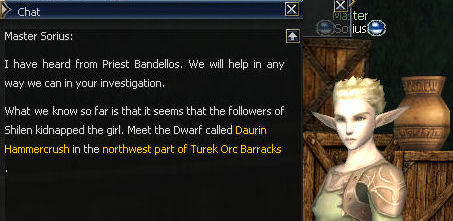 7) At the warrior guild find Sorius and he tells you to find Daurin Hammercrush at the Turek Orc Barracks.