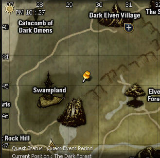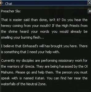 6. If you mess up answering her questions just do it again. She tells you to find Katari near the waterfall by the neutral zone. She's more northish of the w in waterfall than "near" it. I suggest trading some diamonds for a scroll to Dwarf town here, as well as Orc town.