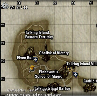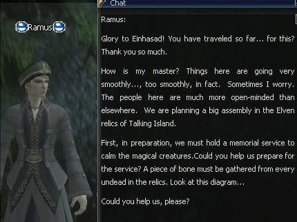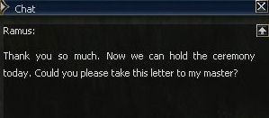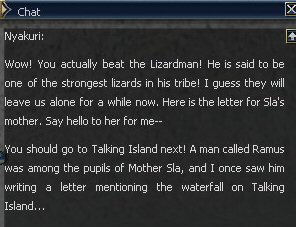 16. Once you win, which you definitely should, she tells you to find Ramus on Talking Island. Port back to Gludin, and either boat, port or you could swim and SOE, to Talking Island. OR better use, town specific SOE! Ramus is by the Singing Waterfall and you can port right there from the gatekeeper.