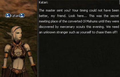 8. Talk to Katari again. This time an Ol Mahum Betrayer spawns and begins to run away. Root him before he gets too far then kill him.