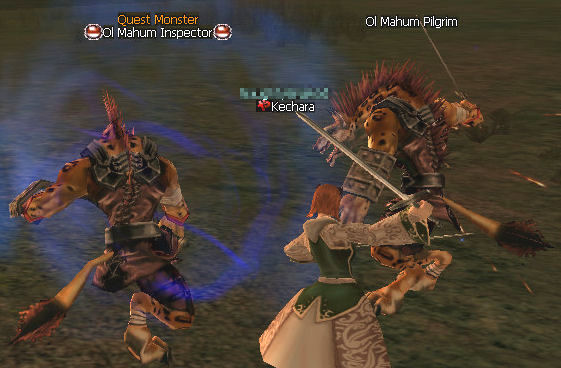 7. Immediately after you speak to her, two mobs spawn. One is called Ol Mahum Pilgrim, this one will be attacking the Ol Mahum Inspector. DO NOT attack the Pilgrim, attack the Inspector. The Pilgrim doesn't even have a health bar so that should be your first tip off.
