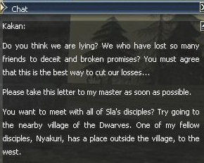 10. Back to Sla near the Plains of Dion. She sends you off to Orc land to find Kakan. The town specific SOE would be great here.