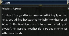 5. She sends you off to find Preacher Sla in the wastelands, only she's not in the wastelands, she's near the Plains of Dion port.
