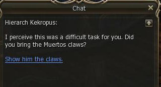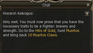 7) As a further test you then have to hunt Muertos. Go either to the southern end of the island or out the east gate and kill any Muertos you see there until you have 10 claws (you will have to kill about 30).