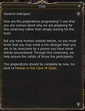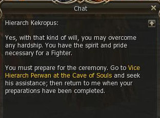Kekropus sends you to Vice Hierarch Perwan in the Cave of Souls, where you started your career as a Kamael.