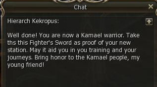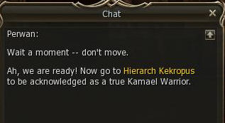 6) In a fake ceremony - no special effects at all - Perwan promotes you to a true Kamael warrior and sends you back to Kekropus.