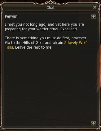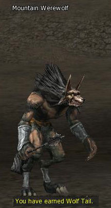 4) He wants you to kill Mountain Werewolves in the Hills of Gold and bring back 5 Wolf Tails.