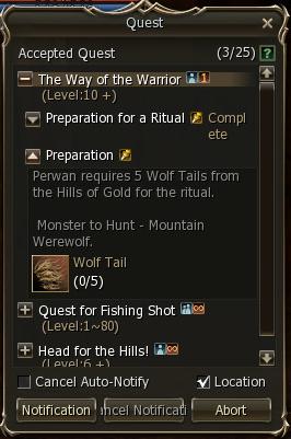 2) Choose "The Way of the Warrior" from the quest menu.