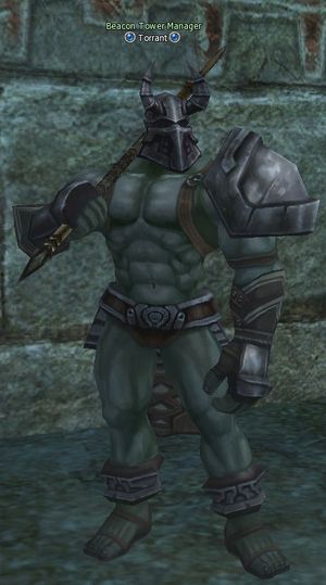 Beacon Tower Manager Torrant stands near Caron's Dungeon and needs the help of Seer Moira to keep the beacon flame strong.