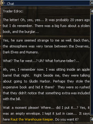 25) In Hunters, Trader Edroc sends you to Raut the Warehouse Keeper, who is clear over in GLUDIN.