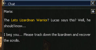 11) Maria asks you to track down some scrolls from the Leto Lizardman Warrior. At least you get out of town right?