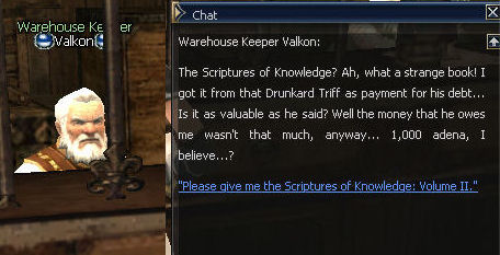 Go to Giran to the Warehouse to see Valkon.